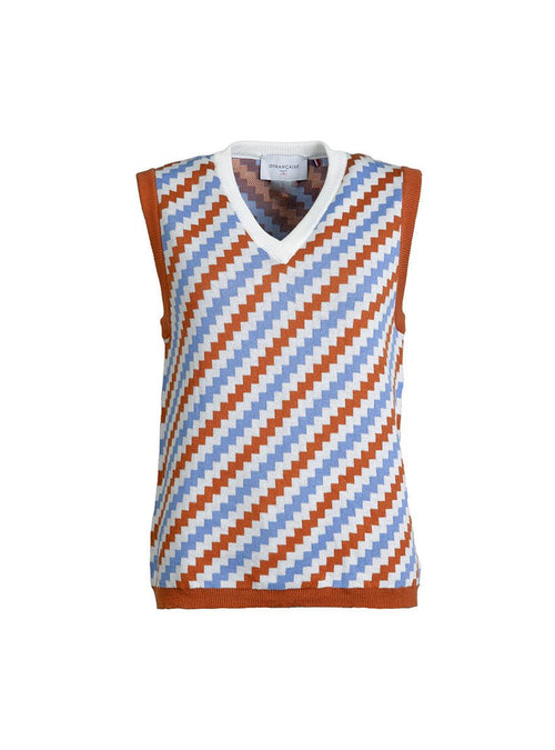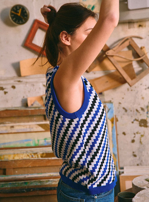 Le pull sans manches Floriane vert matcha révèle une allure contemporaine portée par la richesse subtile de sa maille diagonale bicolore. Son encol...