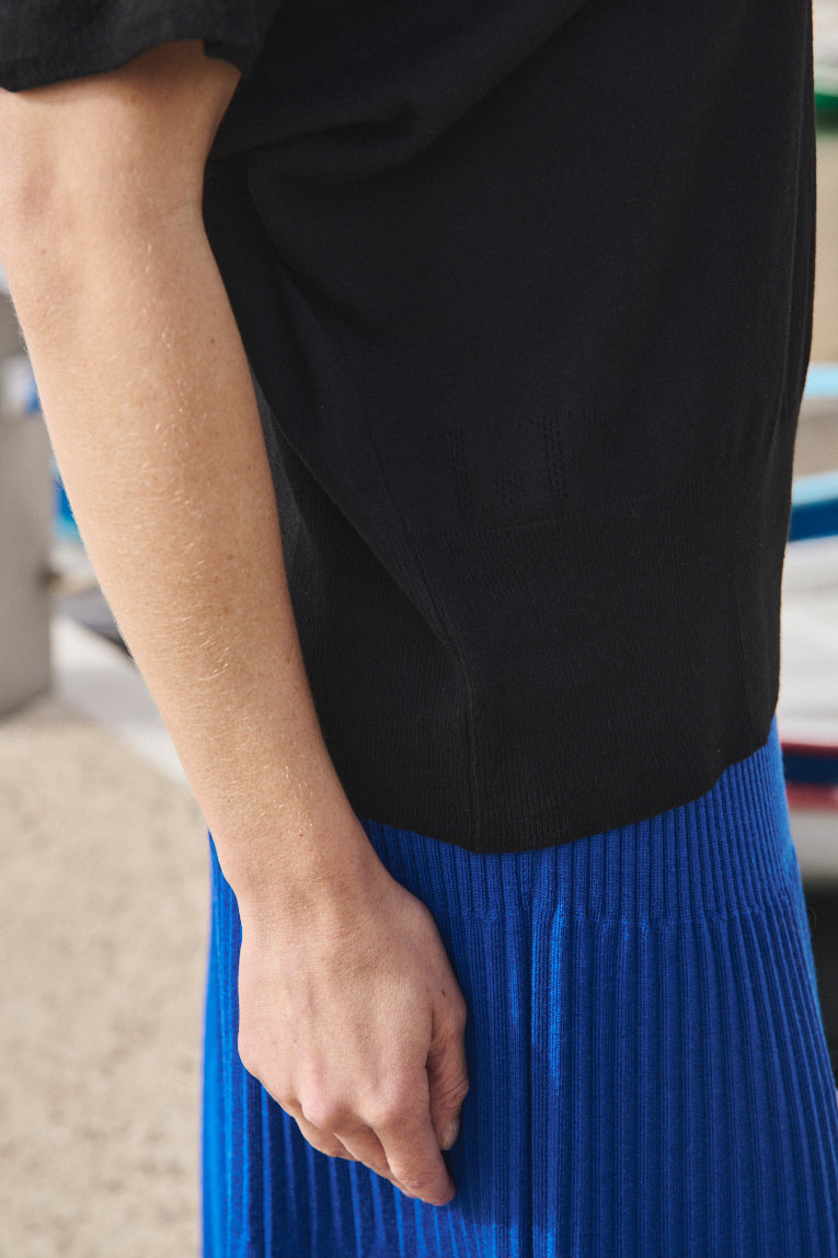Le top Félicité noir révèle une allure contemporaine tout en finesse, porté par une coupe aux manches kimono qui dessine une ligne fluide et nature...
