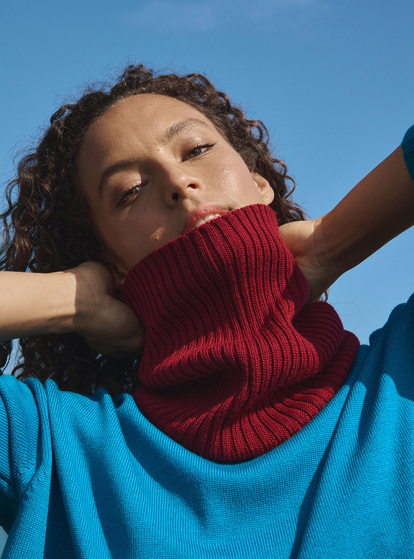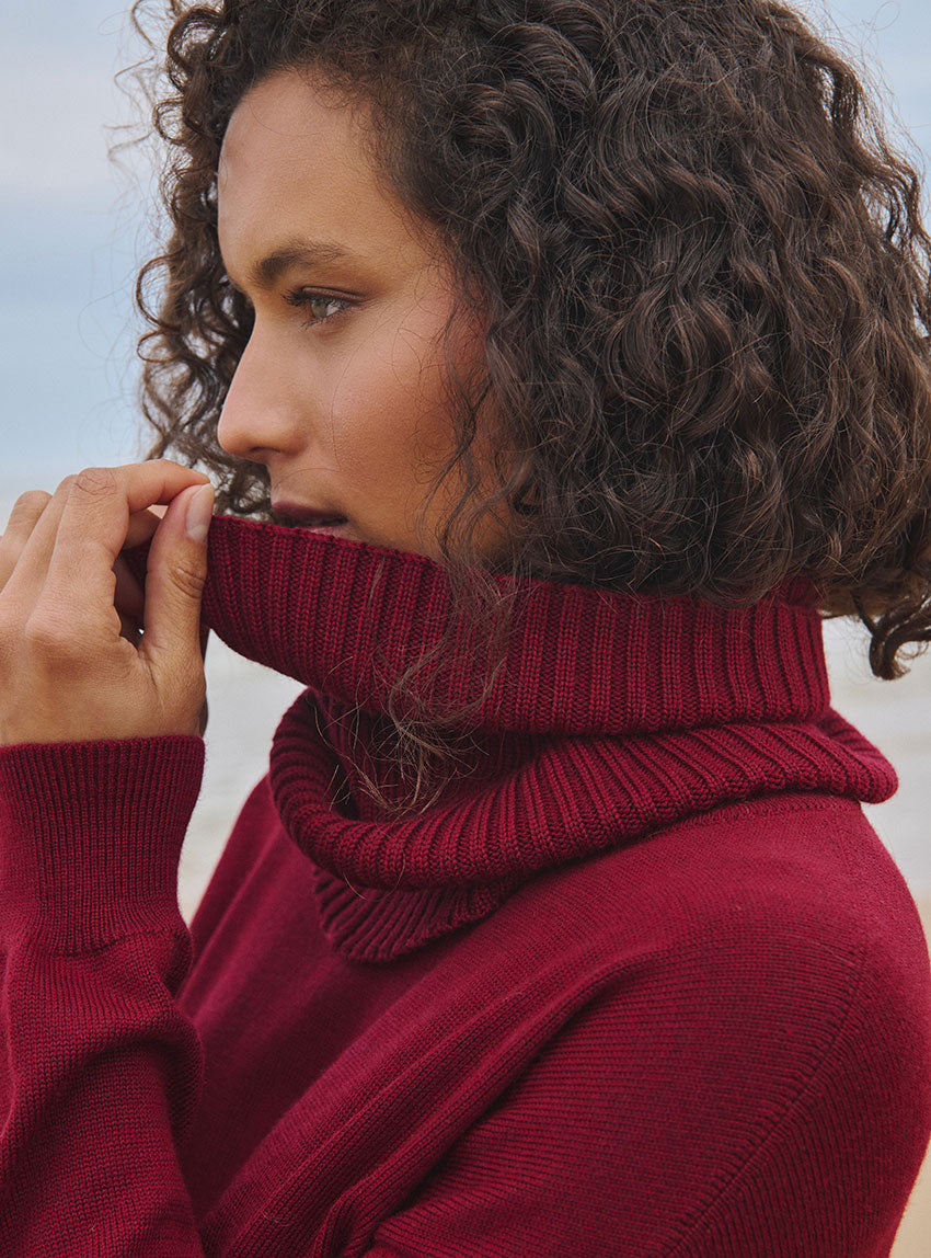 Dans sa teinte rouge bourgogne, profonde et vibrante, ce col incarne l’élégance hivernale. Cette couleur chaleureuse capte la lumière avec intensité, évoque la richesse du vin et se marie à merveille avec des tons neutres comme le beige, le gris ou le noir, mais aussi avec des teintes plus vives pour des associations audacieuses.