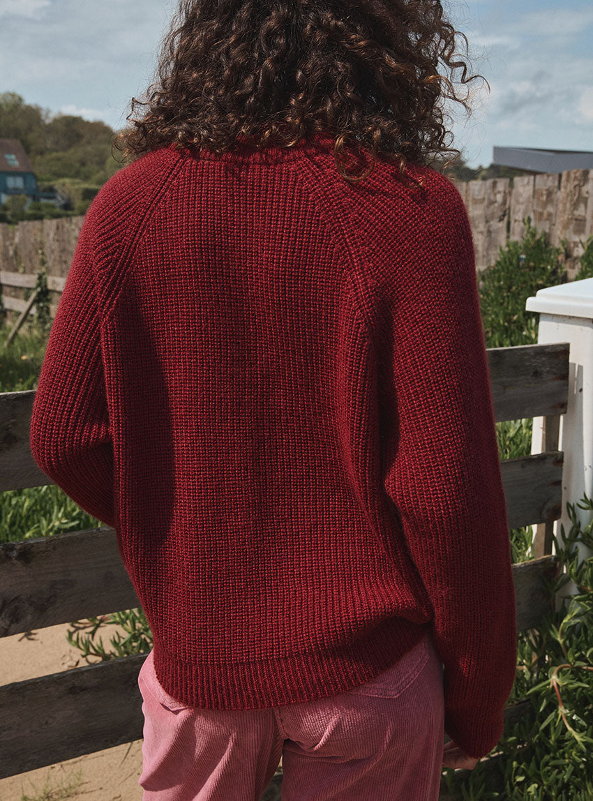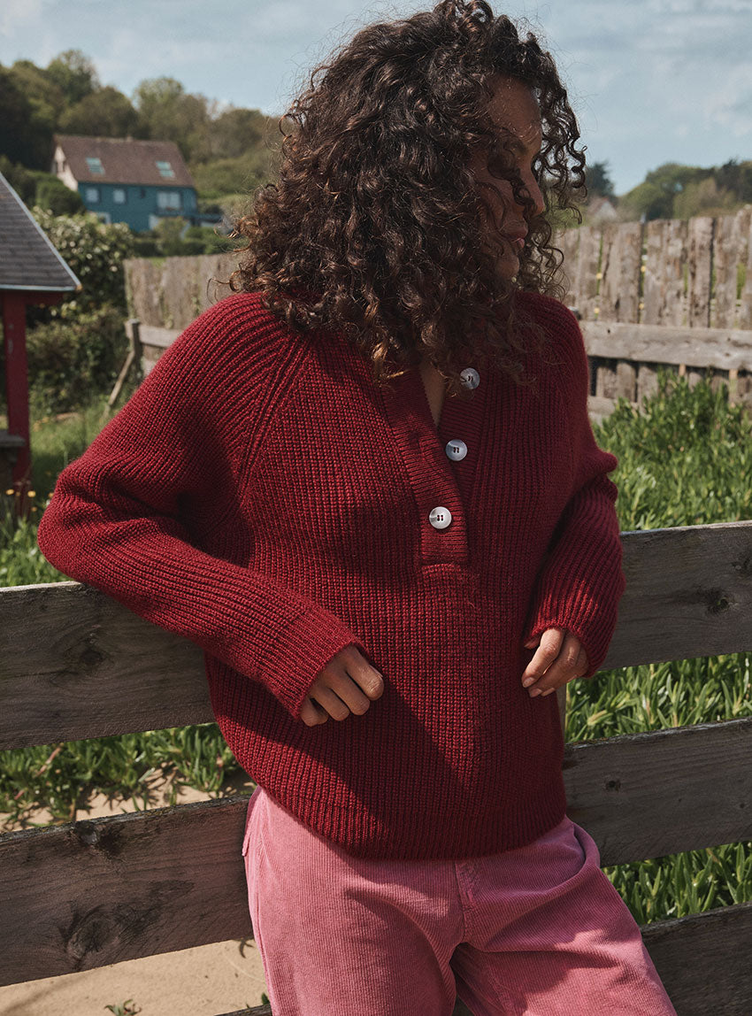 La couleur rouge Médoc insuffle à ce pull un caractère profond et sophistiqué. Ce rouge, tirant vers le bordeaux intense, évoque la chaleur des vins du Sud-Ouest et apporte une note à la fois élégante et audacieuse. Lumineuse sans être criarde, cette teinte met instantanément en valeur le teint et réveille les looks hivernaux souvent plus sobres.