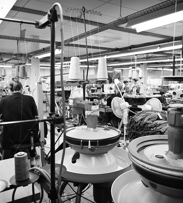 Ces compétences sont associées à un parc moderne et performant de 124 machines pour travailler des matières naturelles, soigneusement sélectionnées. Collection après collection, nos équipes s’attachent ainsi à produire une maille de qualité 100% made in France pour une mode durable.