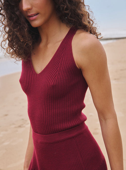 - Débardeur col V en viscose et polyester