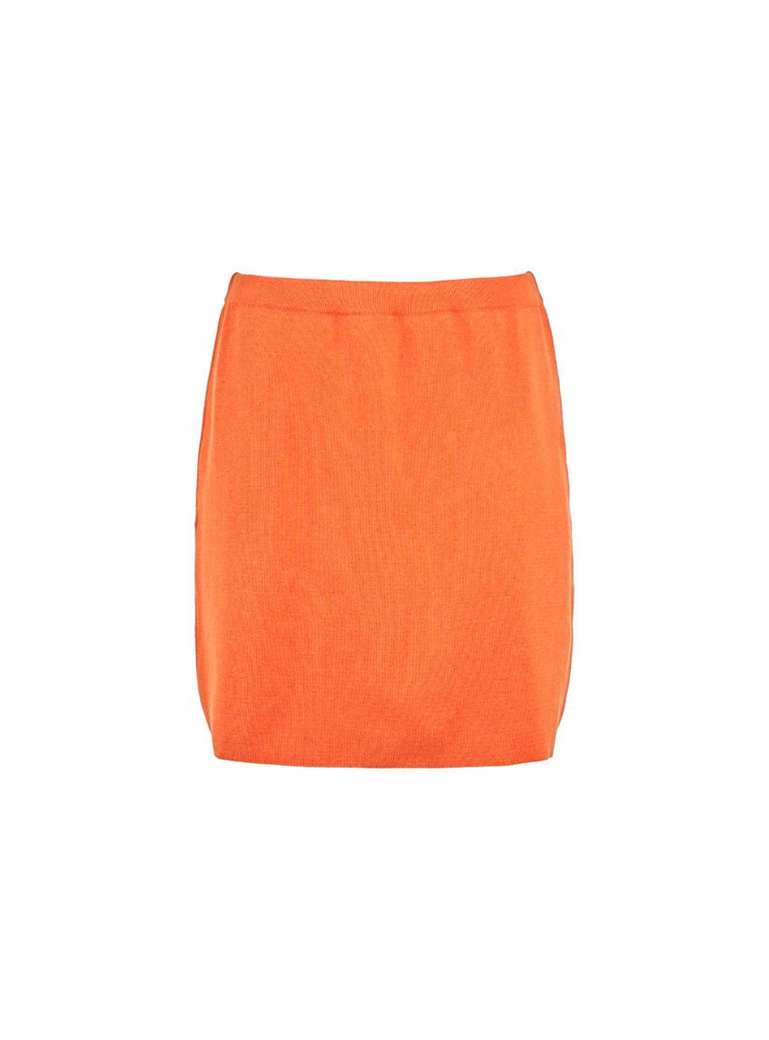 Dans sa teinte orange solaire, la jupe Blondie insuffle une énergie vive et rayonnante. C’est une couleur qui capte la lumière, réchauffe la silhouette, et imprime à la pièce une présence lumineuse, audacieuse sans être excessive.