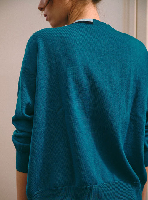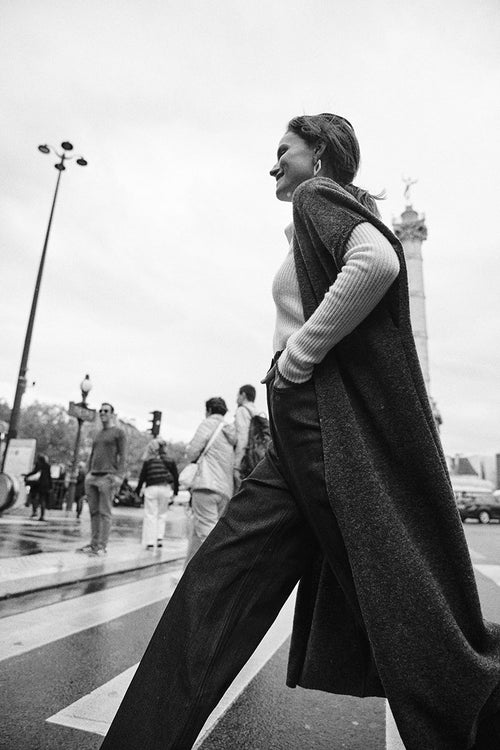 Le pantalon Alexia est tricoté en maille point de Rome, une maille double réputée pour sa structure dense, son tombé impeccable et son maintien naturel. Grâce à cette construction spécifique, la maille ne se déforme pas, elle épouse le mouvement tout en conservant une silhouette nette. C’est une maille qui allie souplesse et tenue, idéale pour des pièces à la coupe ample et élégante comme celle-ci.