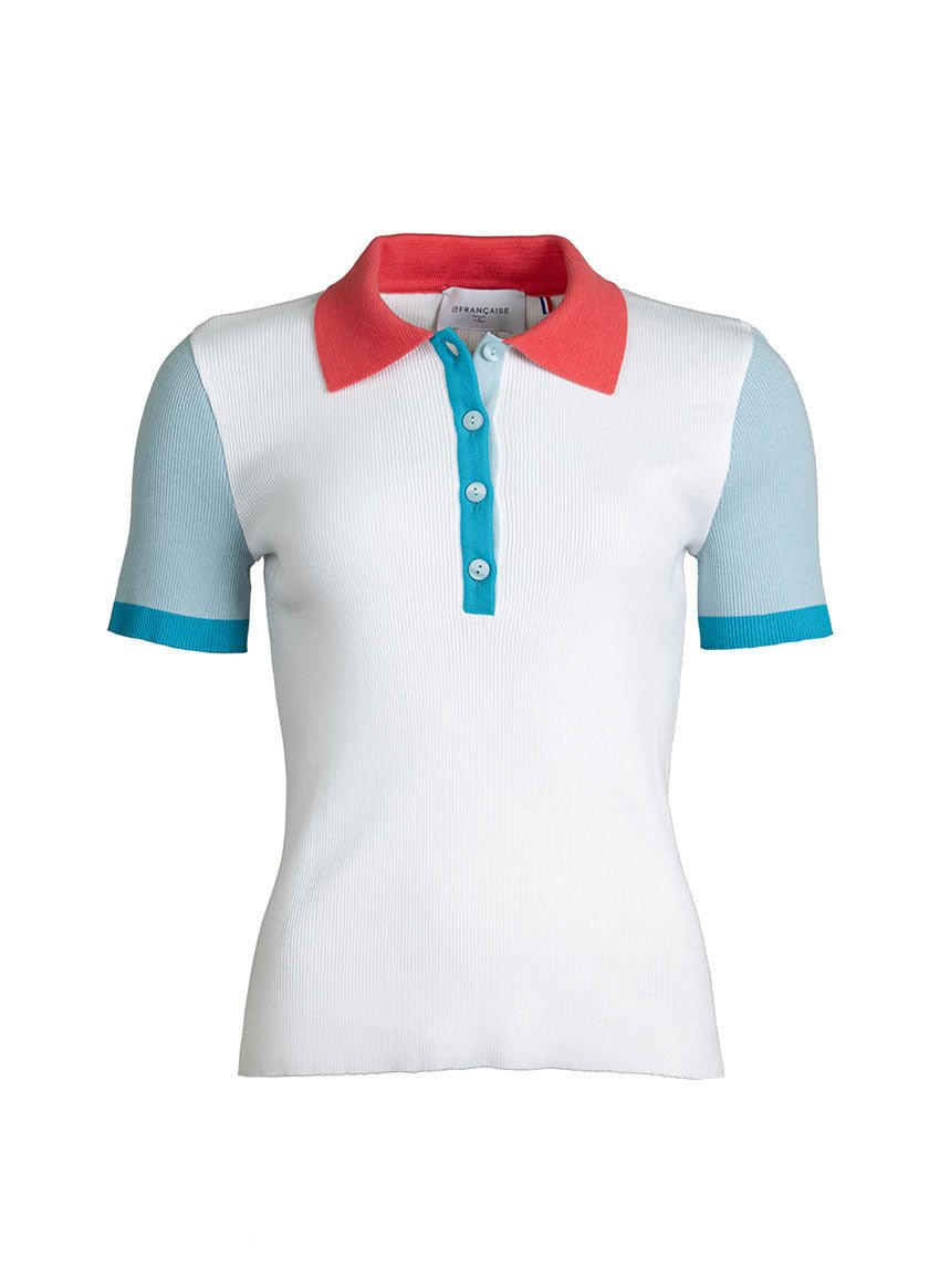 Le blanc est une couleur intemporelle qui incarne l’élégance et la pureté. Dans le polo Berthe, il sert de base lumineuse et raffinée, mettant en valeur le jeu de couleurs contrastées qui orne cette pièce unique. Le col polo en rose pastèque apporte une note douce et fraîche, parfaite pour illuminer le teint, tandis que la patte de boutonnage en vert céladon et bleu lagon ajoute du caractère et de la modernité. Les liserés bleu lagon sur les emmanchures viennent structurer l’ensemble avec finesse, créant un équilibre harmonieux entre sobriété et originalité. Grâce à sa polyvalence, ce polo se marie aussi bien avec des tons neutres pour un look minimaliste que des pièces plus colorées pour une tenue audacieuse et dynamique. Idéal pour une allure chic et décontractée, il deviendra rapidement un incontournable de la saison.