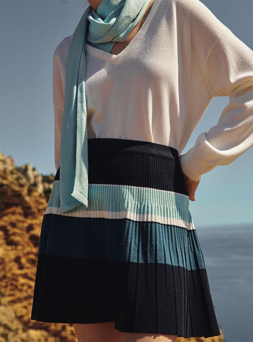 Le bleu marine est une teinte incontournable, à la fois classique et chic. Il apporte une élégance naturelle et une grande polyvalence. Sa sobriété lui permet d’être porté en toute occasion, que ce soit dans des tenues décontractées ou plus habillées. En mode, le bleu marine est apprécié pour sa capacité à s’associer facilement avec d’autres couleurs. Il fonctionne parfaitement avec des teintes neutres comme le blanc et le beige, mais aussi avec des couleurs plus vives comme le rouge, ou le jaune moutarde. Sur une pièce en maille, le bleu marine renforce l’effet structurant du tricot tout en apportant une touche de douceur et de profondeur à la silhouette. Son allure intemporelle en fait un choix sûr et raffiné, parfait pour des vêtements qui traversent les saisons avec style.