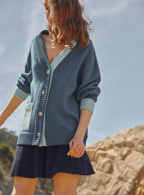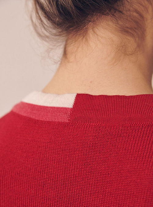 Le pull Amandine se distingue par un jeu de couleurs audacieux et contrasté qui lui confère une allure moderne et graphique. Le gris perlé apporte une touche douce et élégante sur le devant du pull, créant un effet lumineux et raffiné. Son association avec les côtes bicolores renforce son aspect texturé et structuré. Le noir, présent sur le dos et les manches, offre une base intemporelle et sophistiquée, mettant en valeur le contraste avec le devant bicolore. Il apporte également une profondeur qui affine et élance la silhouette. Le jaune tonique, appliqué en block color sur le col roulé, vient casser la sobriété de l’ensemble en injectant une touche éclatante et énergique. Cette couleur vibrante illumine le visage et souligne le caractère résolument contemporain du modèle. Cette palette de couleurs équilibrée, entre tons neutres et accent lumineux, fait du pull Amandine une pièce à la fois chic et originale, parfaite pour dynamiser une tenue d’hiver.