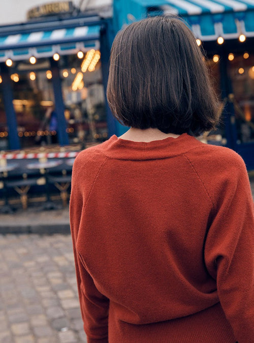 Le pull Anna est conçu en maille jersey, une technique de tricotage qui confère souplesse et confort au vêtement. Sa particularité réside dans l'ajout de torsades sur le devant, apportant du relief et un effet texturé subtil. Ce mélange de structures crée un équilibre entre douceur et caractère, rendant ce pull à la fois confortable et raffiné. Les emmanchures raglan accentuent son allure décontractée tout en offrant une grande liberté de mouvement. Les bords-côtes contrastés sur les manches assurent une belle tenue et ajoutent une touche de modernité à la pièce.