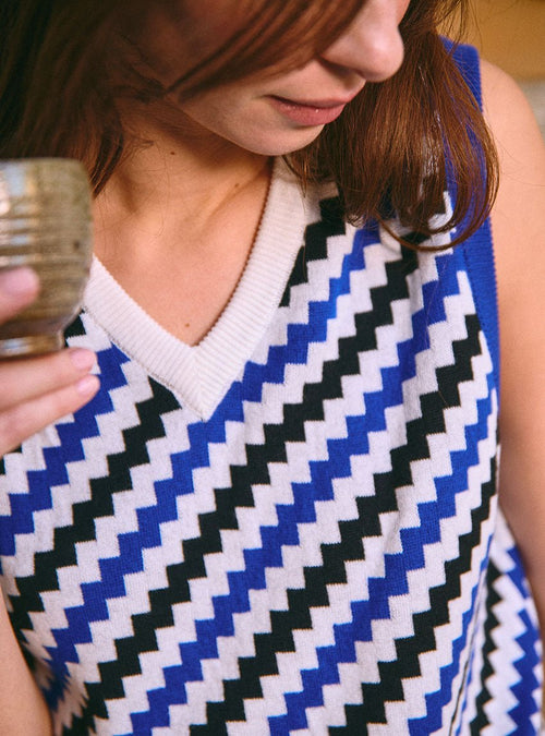 Le pull Anna bleu mouliné incarne l’alliance parfaite entre confort et caractère. Confectionné en 100% laine fine recyclée...