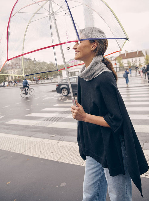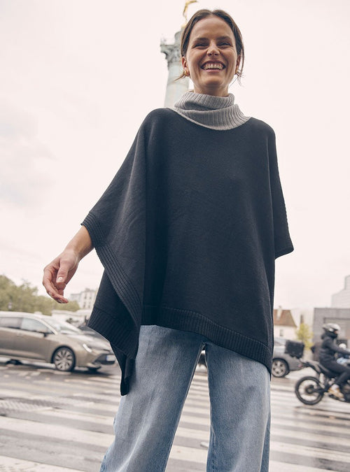 L’association de ces teintes crée un jeu de lumière subtil et met en valeur la coupe oversize du pull. Idéal pour celles qui recherchent une pièce à la fois chaleureuse, confortable et résolument moderne.