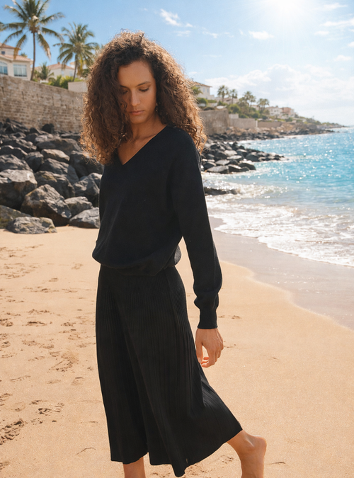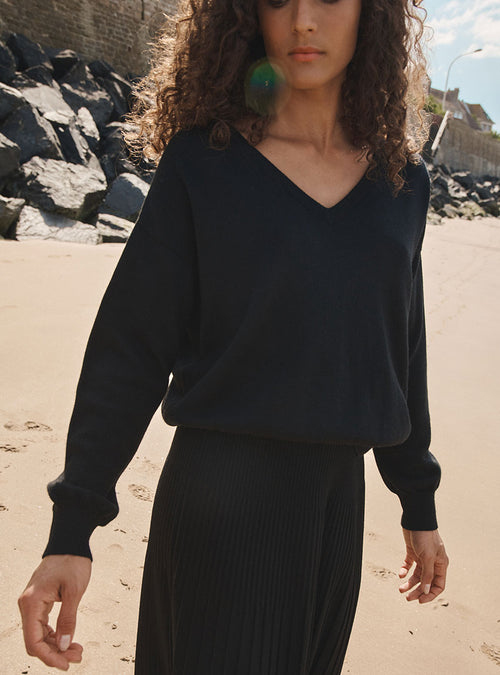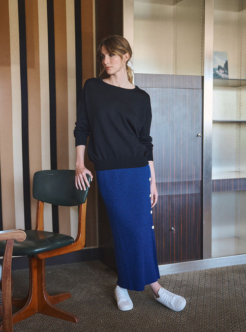 Le pull Aurélie est confectionné en grosse maille perlée, une technique de tricotage qui crée un effet texturé et volumineux, idéal pour une sensation de chaleur et de confort. Cette maille apporte du relief à la pièce tout en conservant une belle souplesse et une grande douceur, notamment grâce à sa composition en mohair (48%), une fibre réputée pour sa légèreté et son pouvoir isolant. Associée aux côtes 1x1 sur le col, la patte de boutonnage et les finitions, cette maille garantit un tombé fluide et un confort optimal.