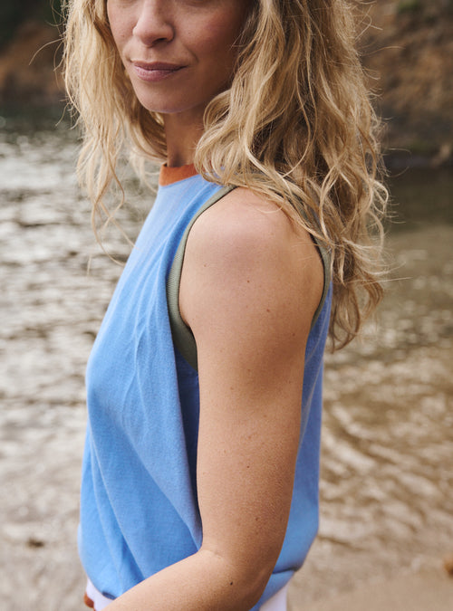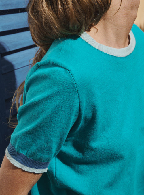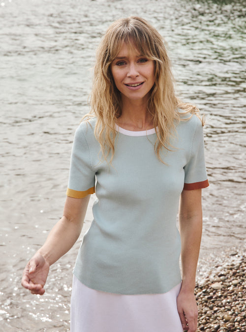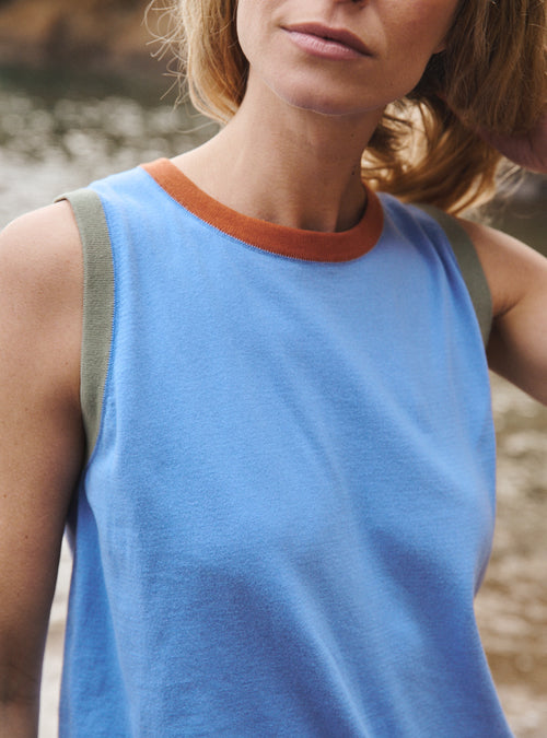 Le bleu brume du short Bella évoque un ciel d’été au petit matin, entre fraîcheur et clarté. Subtilement poudré, ce bleu doux et enveloppant insuffle à la silhouette une touche de légèreté teintée d’élégance. Ni pastel, ni franc, il flirte avec les nuances de l’air et de la lumière pour habiller la maille d’une modernité feutrée. Une teinte qui apaise, sans jamais s’effacer.