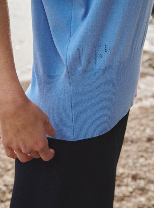 Le top Bastienne s’exprime dans une maille en côtes 2x2 à la fois souple et texturée. Ce tricotage régulier apporte de la structure tout en conservant une grande liberté de mouvement. Le coton, naturellement respirant, rend la pièce confortable et agréable à porter, même en pleine chaleur. Il épouse le corps sans le contraindre, pour une silhouette nette et affirmée.