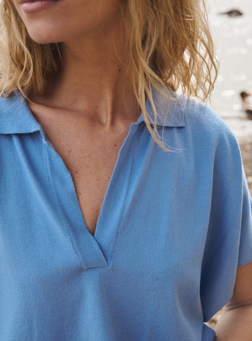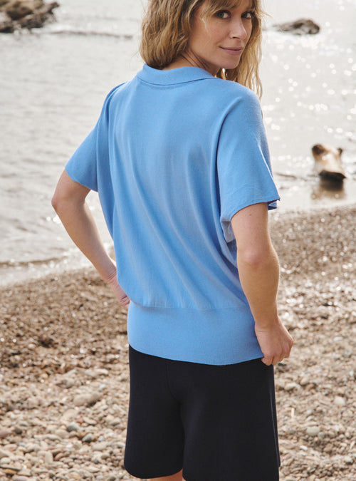 Le violet lavande qui habille le top Bastienne évoque la douceur d’un champ en fleurs au cœur de l’été. Cette teinte enveloppante, subtilement poudrée, insuffle une sensation de calme et de fraîcheur, comme une brise parfumée sur la peau. À la fois délicate et pleine de caractère, elle s’impose avec discrétion, comme une évidence colorée. Pour en révéler tout le relief, des accents contrastés viennent réveiller la silhouette : un col en rose pastèque qui pulse à l’encolure, un éclat de blanc pur sur une manche, une touche vive de jaune luciole sur l’autre. Ce jeu de teintes dessine une partition joyeuse et contemporaine, où chaque couleur dialogue avec l’autre pour composer une harmonie pleine d’énergie et de légèreté.