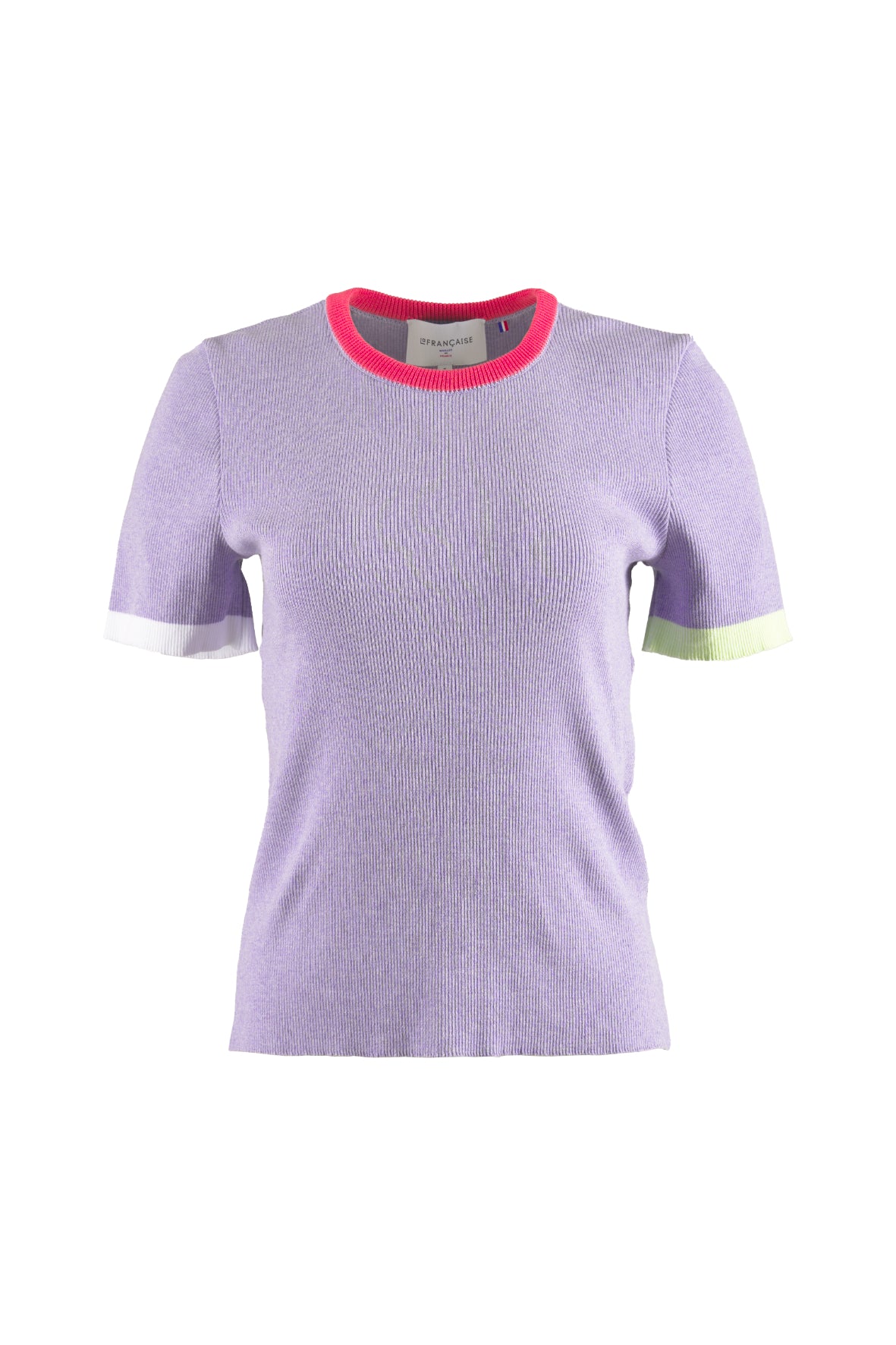 Le violet lavande qui habille le top Bastienne évoque la douceur d’un champ en fleurs au cœur de l’été. Cette teinte enveloppante, subtilement poudrée, insuffle une sensation de calme et de fraîcheur, comme une brise parfumée sur la peau. À la fois délicate et pleine de caractère, elle s’impose avec discrétion, comme une évidence colorée. Pour en révéler tout le relief, des accents contrastés viennent réveiller la silhouette : un col en rose pastèque qui pulse à l’encolure, un éclat de blanc pur sur une manche, une touche vive de jaune luciole sur l’autre. Ce jeu de teintes dessine une partition joyeuse et contemporaine, où chaque couleur dialogue avec l’autre pour composer une harmonie pleine d’énergie et de légèreté.