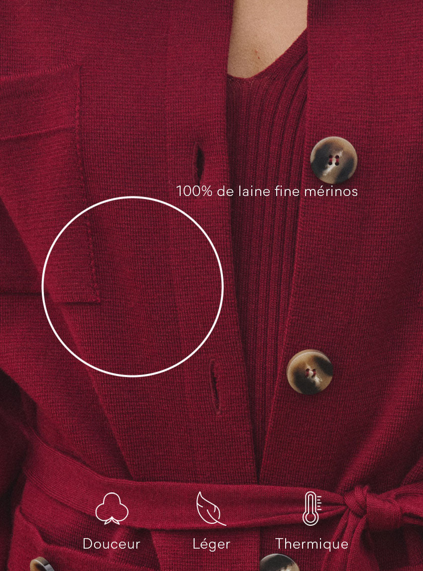 Non. La laine mérinos fine utilisée pour cette maille est douce au toucher et agréable à porter à même la peau. La structure dense ne compromet pas le confort.